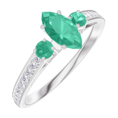 Bague Or blanc 18 carats - Émeraude Marquise 0.3 carat - Pierres de côté Émeraude - Sertissage Diamant