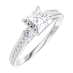 « L'ATELIER » Nº 162528Bague Or blanc 9 carats - Diamant Princesse 0.5 carat - Pierres de côté Diamant - Sertissage Diamant