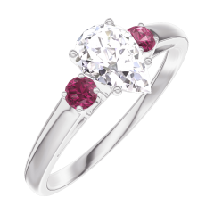 Pourquoi nous faire confiance ? « L'ATELIER » Nº 162844 Bague Or blanc 9 carats - Diamant Poire 0.5 carat - Pierres de côté Rubis
