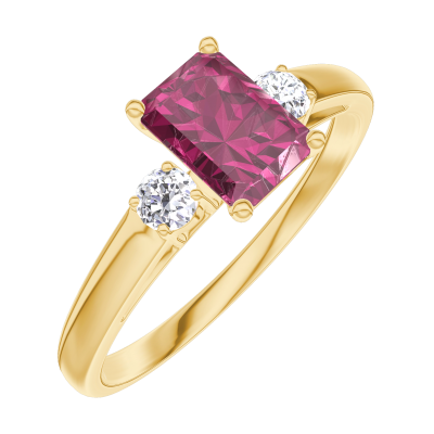 « L'ATELIER » Nº 163221Bague Or jaune 18 carats - Rubis Rectangle 0.5 carat - Pierres de côté Diamant