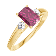 Bague Or jaune 9 carats - Rubis Rectangle 0.5 carat - Pierres de côté Diamant