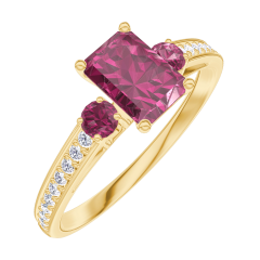 « L'ATELIER » Nº 163246Bague Or jaune 9 carats - Rubis Rectangle 0.5 carat - Pierres de côté Rubis - Sertissage Diamant