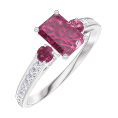 Pourquoi nous faire confiance ? « L'ATELIER » Nº 163248 Bague Or blanc 9 carats - Rubis Rectangle 0.5 carat - Pierres de côté Rubis - Sertissage Diamant