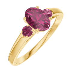Pourquoi nous faire confiance ? « L'ATELIER » Nº 163342 Bague Or jaune 9 carats - Rubis Ovale 0.5 carat - Pierres de côté Rubis