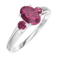 Bague Or blanc 9 carats - Rubis Ovale 0.5 carat - Pierres de côté Rubis