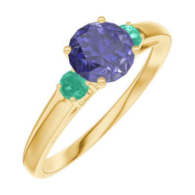 « L'ATELIER » Nº163681Bague Or jaune 18 carats - Saphir bleu Rond 0.5 carat - Pierres de côté Émeraude 4.9 (16)