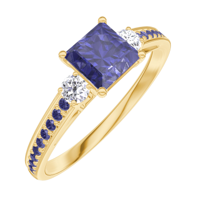 « L'ATELIER » Nº163733Bague Or jaune 18 carats - Saphir bleu Princesse 0.5 carat - Pierres de côté Diamant - Sertissage Saphir bleu