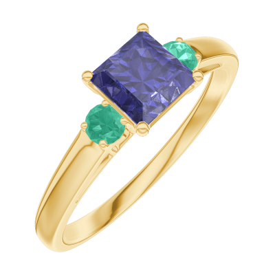 « L'ATELIER » Nº163781Bague Or jaune 18 carats - Saphir bleu Princesse 0.5 carat - Pierres de côté Émeraude