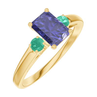 « L'ATELIER » Nº163882Bague Or jaune 9 carats - Saphir bleu Rectangle 0.5 carat - Pierres de côté Émeraude