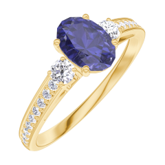 Pourquoi nous faire confiance ? « L'ATELIER » Nº 163925 Bague Or jaune 18 carats - Saphir bleu Ovale 0.5 carat - Pierres de côté Diamant - Sertissage Diamant