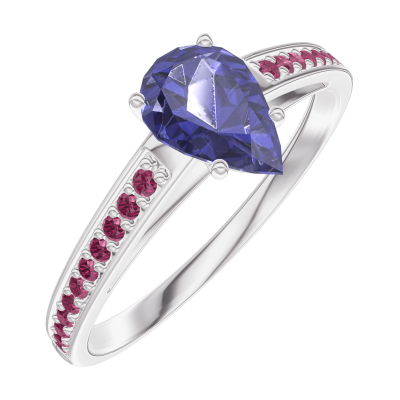 « L'ATELIER » Nº 164012Bague Or blanc 9 carats - Saphir bleu Poire 0.5 carat - Sertissage Rubis