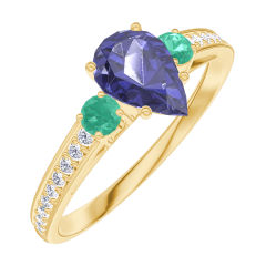 « L'ATELIER » Nº 164085Bague Or jaune 18 carats - Saphir bleu Poire 0.5 carat - Pierres de côté Émeraude - Sertissage Diamant