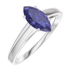 Bague Or blanc 18 carats - Saphir bleu Marquise 0.5 carat