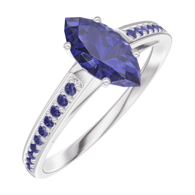 « L'ATELIER » Nº 164115Bague Or blanc 18 carats - Saphir bleu Marquise 0.5 carat - Sertissage Saphir bleu