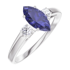 Pourquoi nous faire confiance ? « L'ATELIER » Nº 164124 Bague Or blanc 9 carats - Saphir bleu Marquise 0.5 carat - Pierres de côté Diamant