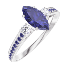 Pourquoi nous faire confiance ? « L'ATELIER » Nº 164136 Bague Or blanc 9 carats - Saphir bleu Marquise 0.5 carat - Pierres de côté Diamant - Sertissage Saphir bleu