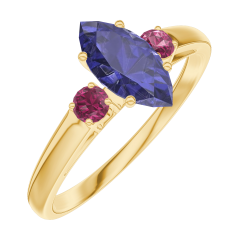 « L'ATELIER » Nº 164141Bague Or jaune 18 carats - Saphir bleu Marquise 0.5 carat - Pierres de côté Rubis