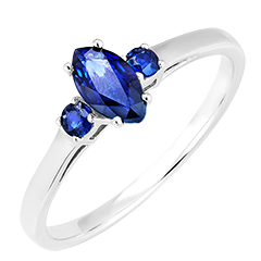 Pourquoi nous faire confiance ? « L'ATELIER » Nº 164163 Bague Or blanc 18 carats - Saphir bleu Marquise 0.5 carat - Pierres de côté Saphir bleu