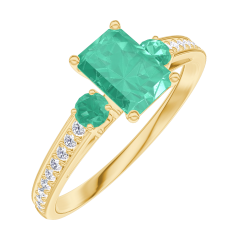 Pourquoi nous faire confiance ? « L'ATELIER » Nº 164486 Bague Or jaune 9 carats - Émeraude Rectangle 0.5 carat - Pierres de côté Émeraude - Sertissage Diamant