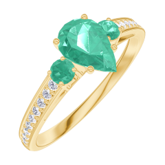 « L'ATELIER » Nº 164685Bague Or jaune 18 carats - Émeraude Poire 0.5 carat - Pierres de côté Émeraude - Sertissage Diamant
