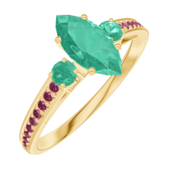 « L'ATELIER » Nº 164790Bague Or jaune 9 carats - Émeraude Marquise 0.5 carat - Pierres de côté Émeraude - Sertissage Rubis