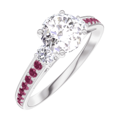 Pourquoi nous faire confiance ? « L'ATELIER » Nº 164832 Bague Or blanc 9 carats - Diamant Rond 0.7 carat - Pierres de côté Diamant - Sertissage Rubis