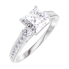 « L'ATELIER » Nº 164927Bague Or blanc 18 carats - Diamant Princesse 0.7 carat - Pierres de côté Diamant - Sertissage Diamant