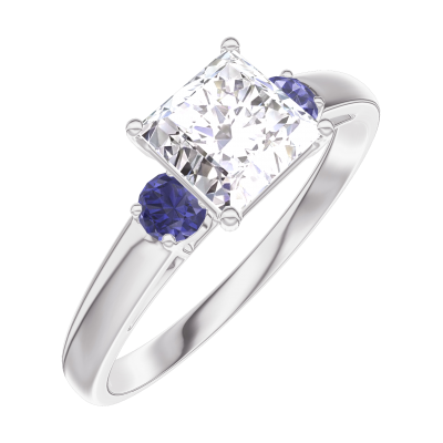 « L'ATELIER » Nº164964Bague Or blanc 9 carats - Diamant Princesse 0.7 carat - Pierres de côté Saphir bleu