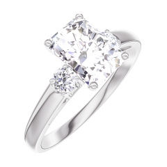 Pourquoi nous faire confiance ? « L'ATELIER » Nº 165023 Bague Or blanc 18 carats - Diamant Rectangle 0.7 carat - Pierres de côté Diamant