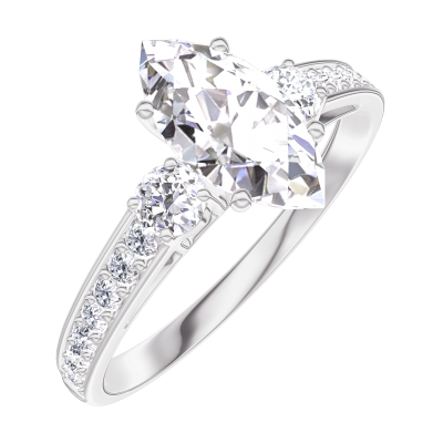 « L'ATELIER » Nº 165328Bague Or blanc 9 carats - Diamant Marquise 0.7 carat - Pierres de côté Diamant - Sertissage Diamant