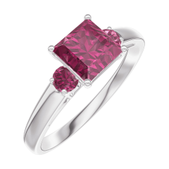 Pourquoi nous faire confiance ? « L'ATELIER » Nº 165544 Bague Or blanc 9 carats - Rubis Princesse 0.7 carat - Pierres de côté Rubis