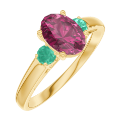 Pourquoi nous faire confiance ? « L'ATELIER » Nº 165781 Bague Or jaune 18 carats - Rubis Ovale 0.7 carat - Pierres de côté Émeraude