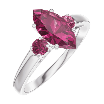 « L'ATELIER » Nº 165943Bague Or blanc 18 carats - Rubis Marquise 0.7 carat - Pierres de côté Rubis