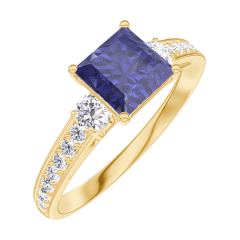 « L'ATELIER » Nº 166125Bague Or jaune 18 carats - Saphir bleu Princesse 0.7 carat - Pierres de côté Diamant - Sertissage Diamant