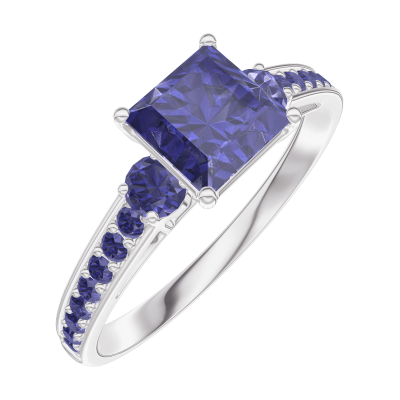 « L'ATELIER » Nº166176Bague Or blanc 9 carats - Saphir bleu Princesse 0.7 carat - Pierres de côté Saphir bleu - Sertissage Saphir bleu