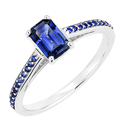 Pourquoi nous faire confiance ? « L'ATELIER » Nº 166215 Bague Or blanc 18 carats - Saphir bleu Rectangle 0.7 carat - Sertissage Saphir bleu