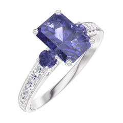 Pourquoi nous faire confiance ? « L'ATELIER » Nº 166268 Bague Or blanc 9 carats - Saphir bleu Rectangle 0.7 carat - Pierres de côté Saphir bleu - Sertissage Diamant
