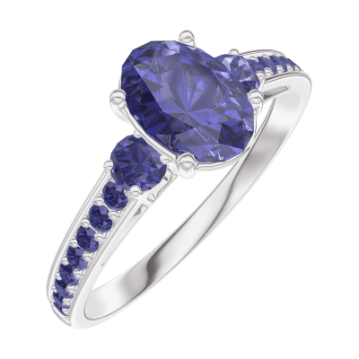 « L'ATELIER » Nº166375Bague Or blanc 18 carats - Saphir bleu Ovale 0.7 carat - Pierres de côté Saphir bleu - Sertissage Saphir bleu