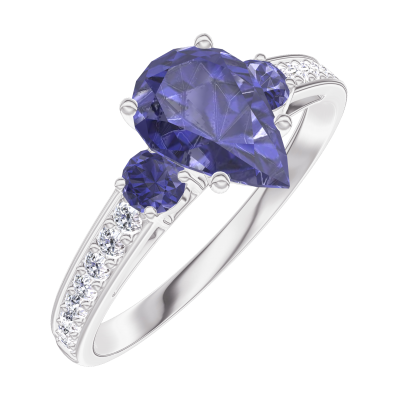 « L'ATELIER » Nº 166468Bague Or blanc 9 carats - Saphir bleu Poire 0.7 carat - Pierres de côté Saphir bleu - Sertissage Diamant