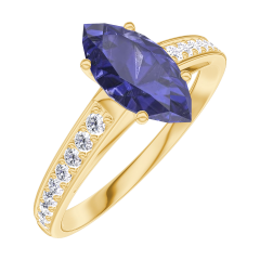 « L'ATELIER » Nº 166505Bague Or jaune 18 carats - Saphir bleu Marquise 0.7 carat - Sertissage Diamant