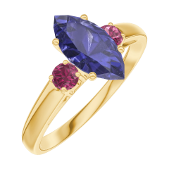 « L'ATELIER » Nº 166541Bague Or jaune 18 carats - Saphir bleu Marquise 0.7 carat - Pierres de côté Rubis