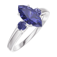 Pourquoi nous faire confiance ? « L'ATELIER » Nº 166564 Bague Or blanc 9 carats - Saphir bleu Marquise 0.7 carat - Pierres de côté Saphir bleu