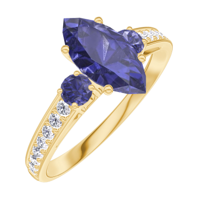 « L'ATELIER » Nº 166565Bague Or jaune 18 carats - Saphir bleu Marquise 0.7 carat - Pierres de côté Saphir bleu - Sertissage Diamant