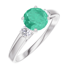Pourquoi nous faire confiance ? « L'ATELIER » Nº 166623 Bague Or blanc 18 carats - Émeraude Rond 0.7 carat - Pierres de côté Diamant