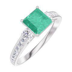 Bague Or blanc 18 carats - Émeraude Princesse 0.7 carat - Pierres de côté Diamant - Sertissage Diamant
