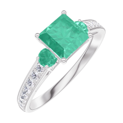 Pourquoi nous faire confiance ? « L'ATELIER » Nº 166788 Bague Or blanc 9 carats - Émeraude Princesse 0.7 carat - Pierres de côté Émeraude - Sertissage Diamant