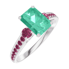 Pourquoi nous faire confiance ? « L'ATELIER » Nº 166852 Bague Or blanc 9 carats - Émeraude Rectangle 0.7 carat - Pierres de côté Rubis - Sertissage Rubis