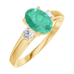 « L'ATELIER » Nº 166922Bague Or jaune 9 carats - Émeraude Ovale 0.7 carat - Pierres de côté Diamant