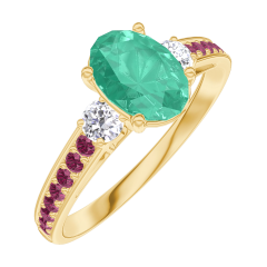 « L'ATELIER » Nº 166930Bague Or jaune 9 carats - Émeraude Ovale 0.7 carat - Pierres de côté Diamant - Sertissage Rubis