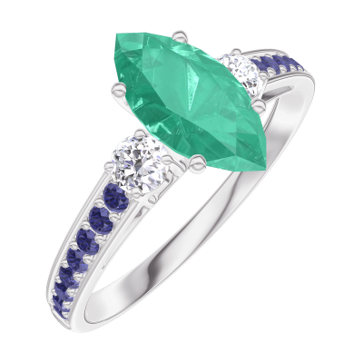 « L'ATELIER » Nº 167135Bague Or blanc 18 carats - Émeraude Marquise 0.7 carat - Pierres de côté Diamant - Sertissage Saphir bleu